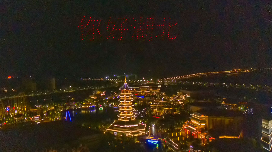 此次荊州方特的“無人機光影秀”動用了300余架無人機,“五一”假期每晚8點升空表演。在時長約13分鐘的表演中,無人機群環繞荊州方特標志性建筑“神州塔”飛行,在空中不斷變換造型和燈光色彩,組成“屈原”、“鳳凰”、“虎座鳥架鼓”、“楚王宮方特門頭”、“祥云”等極具荊楚特色的圖案,并顯示“你好湖北”、“荊州方特”和“致敬勞動者”等字樣,與荊州方特園區美輪美奐的燈光造景相映成輝。