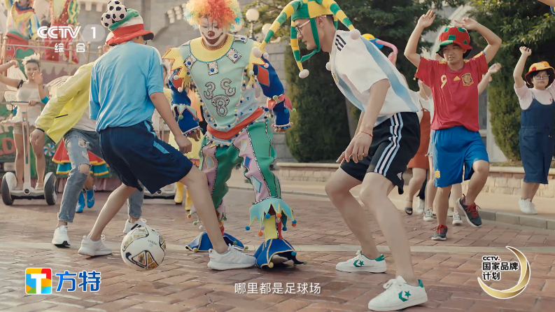 在央視的一分鐘宣傳片中,華強方特通過讓動漫明星熊大、熊二化身球員,方特化身“足球場”,吸引眾多游客歡樂互動,感受體育競技的魅力。而走進方特主題樂園,游客不僅可以看到掛滿球隊旗幟的鮮花大道,活力十足的足球寶貝,還可以親身參與到“嗨啤世界杯”、“水球運動會”等系列足球活動中,狂歡一夏