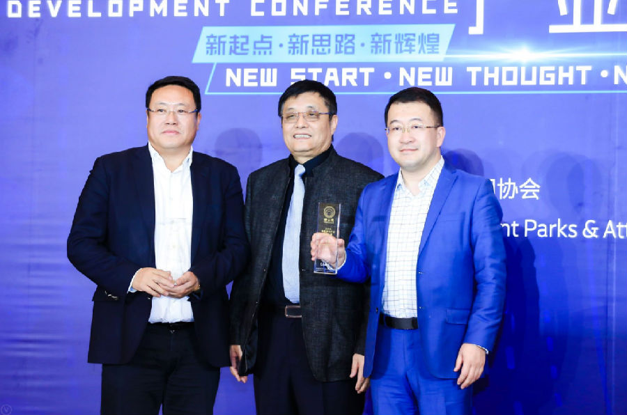 ▲華強方特集團執行總裁丁亮(右一)獲評“2018中國游樂行業領軍人物”