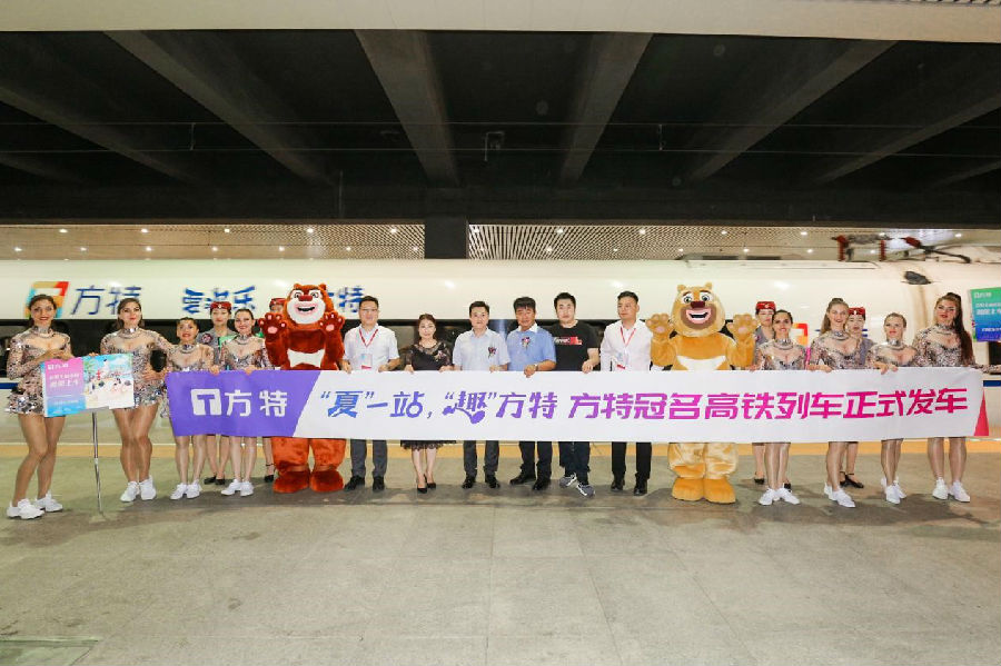 這對列車為哈爾濱站和青島北站之間的對開高鐵,沿途經過的沈陽、天津、濟南、青島等地,均建有多座方特主題樂園。同時,G1246/1247次動車組發車儀式恰逢方特品牌全面煥新之際,且一年一度的暑運也即將開始,華強方特旗下特主題樂園借助此次“方特號”高鐵冠名的契機,向廣大高鐵旅客傳播方特主題樂園倡導的“與人同樂”全新品牌Slogan,為廣大旅客送去更多歡樂。