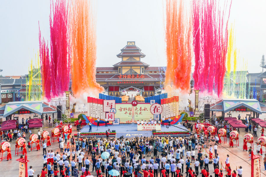 隨著鏗鏘震撼的鼓樂聲響起,開園儀式在兼具濃郁東方文化韻味與時代氣息的表演中拉開帷幕。在眾人的見證下,嘉賓們共同推動象征邯鄲方特正式開園的啟動桿,開啟了邯鄲方特國色春秋的恢宏序幕。現場鼓樂齊鳴、彩煙綻放,邯鄲方特國色春秋向廣大游客正式展現了它的歡樂面貌,盛情邀請廣大游客“樂在成語中”。