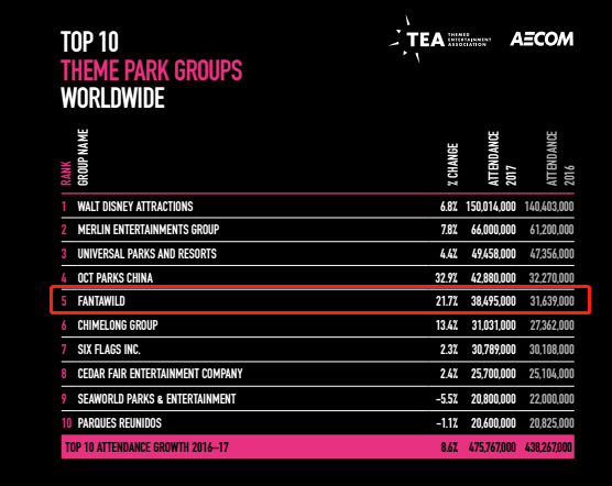 近日,世界主題樂園權(quán)威研究機(jī)構(gòu)美國主題娛樂協(xié)會(huì)(TEA)與美國AECOM集團(tuán)聯(lián)合發(fā)布了2017年全球主題樂園調(diào)查報(bào)告,其中華強(qiáng)方特旗下主題樂園品牌“方特主題樂園”以3849.5萬游客接待量的傲人成績位列全球主題樂園五強(qiáng)。中國文化旅游行業(yè)知名品牌:蟬聯(lián)兩屆全球五強(qiáng)2016年..